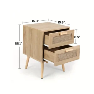 Add a touch of elegance to your bedroom with the SMOOL Rattan Nightstand Set. Each table features a sturdy engineered wood frame and solid wood legs, finished in oak for a classic look. The two drawers, accented with handmade rattan, offer smooth gliding for easy access to your essentials. Space-saving and stylish, this set complements various home decor themes. With easy assembly and a compact design, it’s perfect for small spaces. This side table provides both functionality and charm, making it an ideal addition to any bedroom or living space.