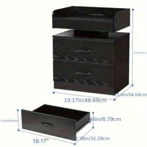 Upgrade your bedroom with the Black Nightstand featuring a built-in charging station and modern LED lighting. This stylish nightstand by HOMBCK includes storage drawers and ample tabletop space, making it perfect for bedrooms and living rooms alike. Its convenient charging station allows for easy device charging, while LED lights add a chic ambiance. Made from durable wooden material, this multifunctional nightstand combines elegance with practicality, offering both storage and functionality to keep your essentials organized. Ideal for modern spaces, this versatile bedside table complements any decor with a sleek black finish.