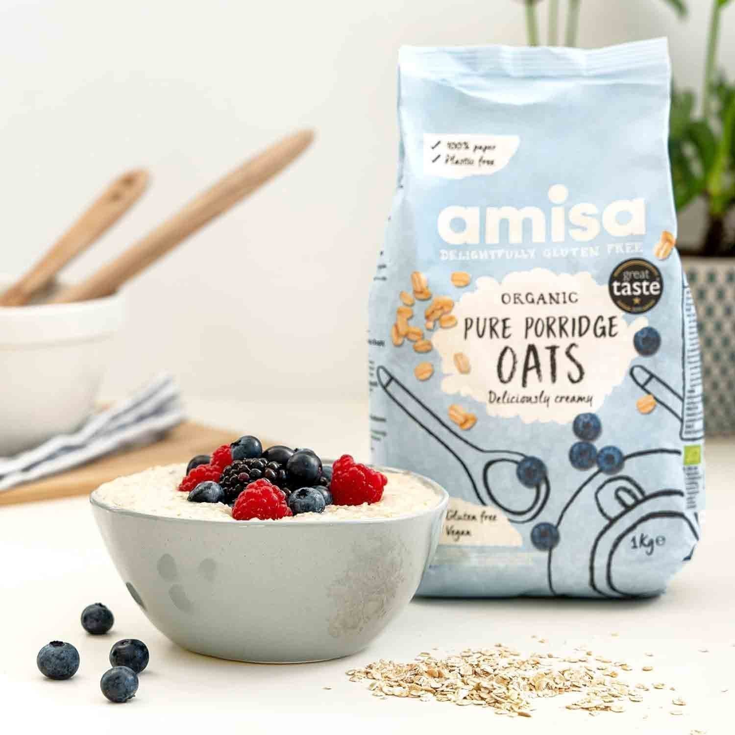 Amisa Organic Gluten Free Porridge Oats, 1kg – Batch Tested for Gluten