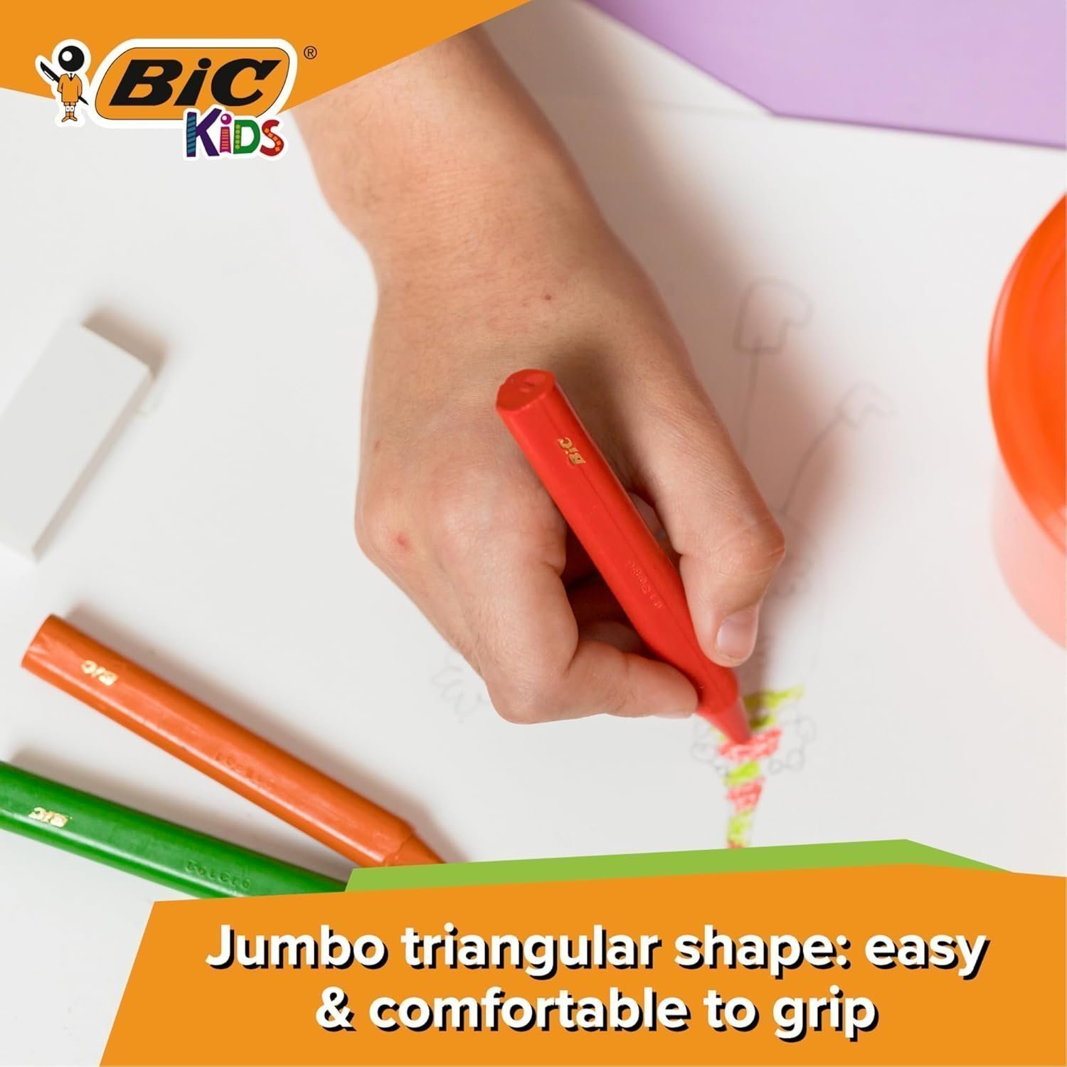 - The triangular shape helps children position their fingers on the crayon naturally