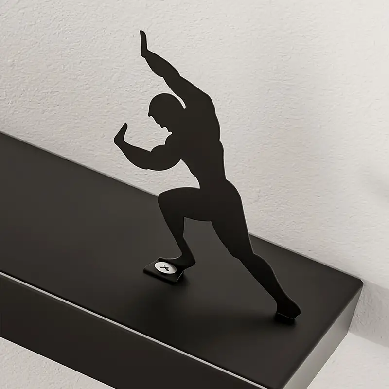 Creative Wall-Mounted Toilet Paper Holder with Silhouette Accent – Self-Adhesive, Wooden and Iron Material, Bathroom Tissue Roll Storage for Home and Kitchen Use – 1pc