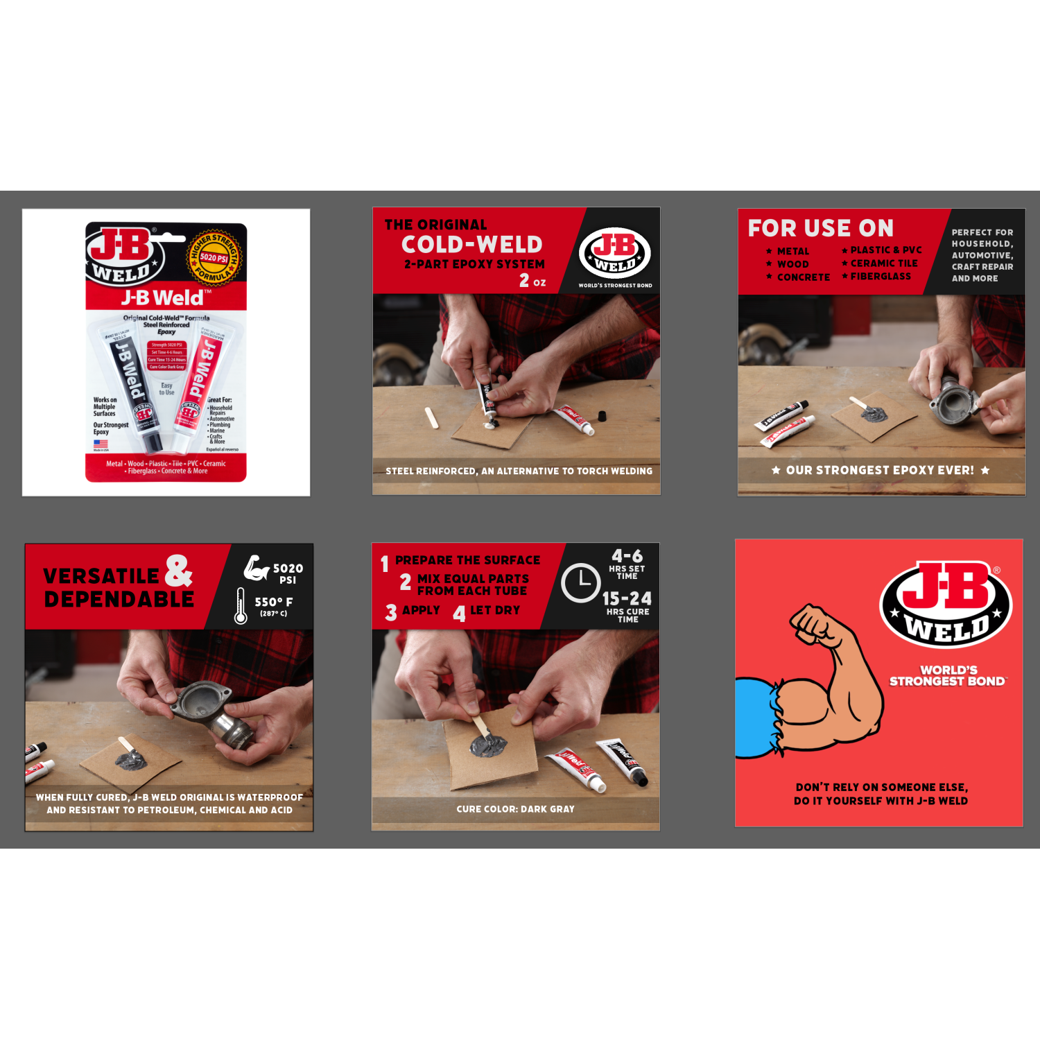 J-B Weld Original is a two part epoxy that provides strong lasting repairs for metal, plastic, pvc, wood, fiberglass and ceramics. The original formula is known throughout the automotive industry as the Original Cold Weld.